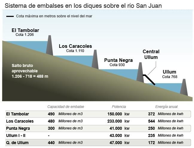Después de varios años de idas y vueltas con el proyecto y con tres diques terminados, Ullum, Punta Negra y Los Caracoles, recién ahora a casi 40 años del comienzo de las tratativas se ha logrado poner en marcha esta megaobra que, más allá de representar una importante fuente de trabajo contribuirá, una vez que se termine, a mejorar las condiciones de almacenamiento de agua ya que será la presa más grande entre las existentes en la actualidad (tendrá un volumen de embalse de 605 hm3) con una capacidad para generar 343 Gwh. de energía eléctrica.