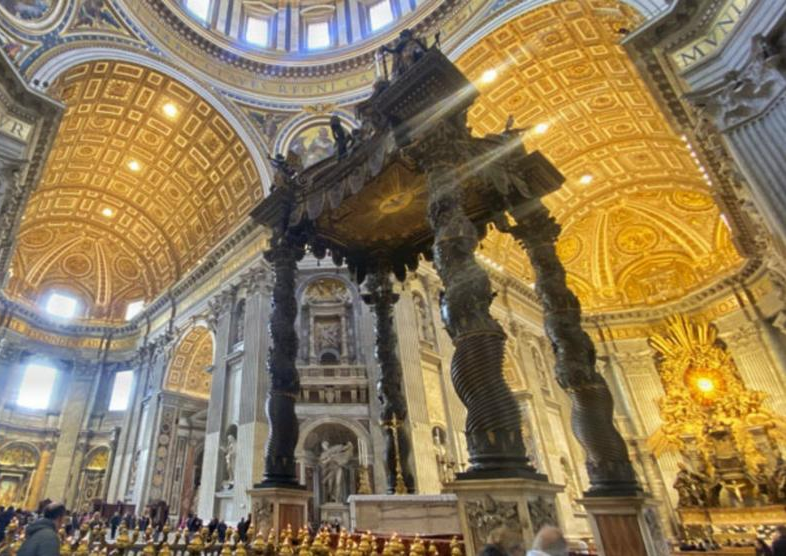 El imponente baldaquino de la basílica de San Pedro realizado por el genio del Barroco italiano, Gianlorenzo Bernini, afronta una "titánica” restauración de diez años, necesaria después de 250 años de la primera y que costará 700.000 euros financiados por la Orden estadounidense de los Caballeros de Colón. El arcipreste de la basílica de San Pedro y vicario del papa para la Ciudad del Vaticano, Mauro Gambetti, presentó los detalles con algo de "miedo” y "alegría”, pues será "una restauración exigente”, pero también "necesaria” y con "un particular significado, porque se realiza en la perspectiva del ya inminente Jubileo de 2025”.