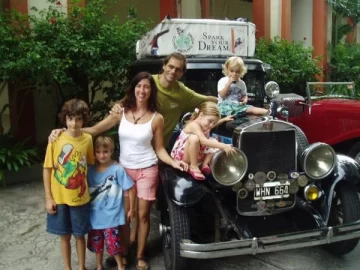 Su compañero de viaje en este tiempo ha sido un vehículo de época, un Graham-Paige de 1928, que les llevó por todo el continente americano primero, luego a través de Australia y Nueva Zelanda, por tierras asiáticas desde Japón hasta la India, África de norte a sur y finalmente Europa, por donde entraron a través de Turquía. El vehículo, que lo compraron de casualidad antes de dejar Argentina, "parecía que iba a ser el problema", recuerda el padre, "pero fue la solución”, y tanto ha cruzado el Amazonas como ha atravesado el desierto.