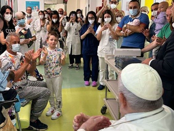 > El papa visitó niños en oncología mientras hoy recibe el alta médica