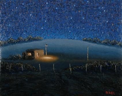 Estoy mirando la intemperie de un ranchito que pintaste, al que se le cae la luz por dos ventanitas breves desmesuradas a la noche y un palo (posiblemente de algarrobo) que hace de faro de la pampa con su ojo de luna al tope. Y al fondo de la noche un sorprendente cielo azul (¡ni la noche pudo con tus azules, Mario!). "Rancho solo" denominaste a esa obra. Sin embargo, por los manantiales que la luz derrama en esa noche solo tuya, se vuela como calandria hechizada la vida que late adentro. Percibo desde mi afuera empinado los silbos de una tonada popular en labios de un viejito; me llegan las caricias de un aroma a sopaipillas recién fritas y el suspiro de la noche que se aquerencia en el paisaje. El rancho no está solo. Nada queda reservado a la soledad en tus pinturas; revientan de savia y de victoria. La noche parece haber nacido en tus telas. Un cóndor de fantasía y color, sobrevolando y descubriendo, nos relata desde raros cielos tus aldeas modestas con el lujo de un relato de amor. ¡Qué pena, Mario, tantas cosas, tanta luz, tanto azul no dicho en el camino!