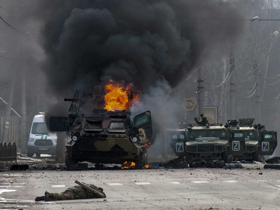 Blindados rusos que invadieron Ucrania sufren los ataques de las defensas que luchan por defender su territorio de las tropas del genocida Vladimir Putin.