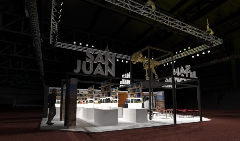 Coronado por un gran dinosaurio el stand de San Juan, en la 45ta Feria Internacional del Libro de Buenos Aires en la Rural de Palermo, surge como un estandarte identificatorio en uno de los eventos más prestigiosos y convocantes para los amantes de los libros y la lectura.