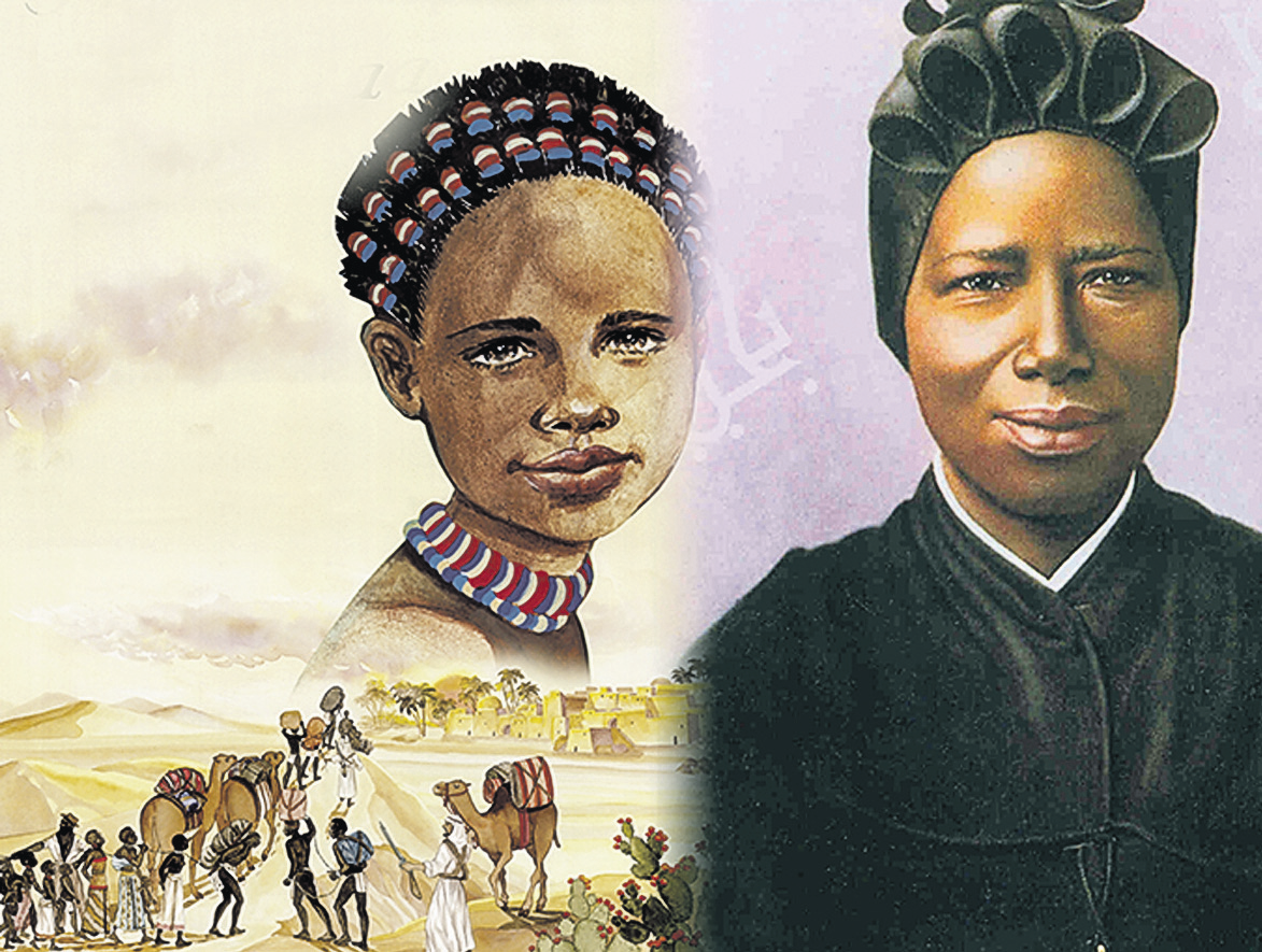 Originaria de un pequeño pueblito de Darfur, en África, fue secuestrada a los siete años para ser vendida en el mercado. Pasó por cinco dueños, uno de los cuales le propinó un trato cruel. Fue liberada por un diplomático italiano que la trasladó a Venecia, donde recibió el bautismo. Luego de un largo proceso de crecimiento en la fe, ingresó en las Hermanas de la Caridad y trabajó pastoralmente en la ciudad de Schio, cerca de Vicenza. Juan Pablo II la canonizó en el 2000. Personalmente tuve la suerte de participar en la beatificación previa, el domingo 17 de mayo de 1992, en San Pedro.