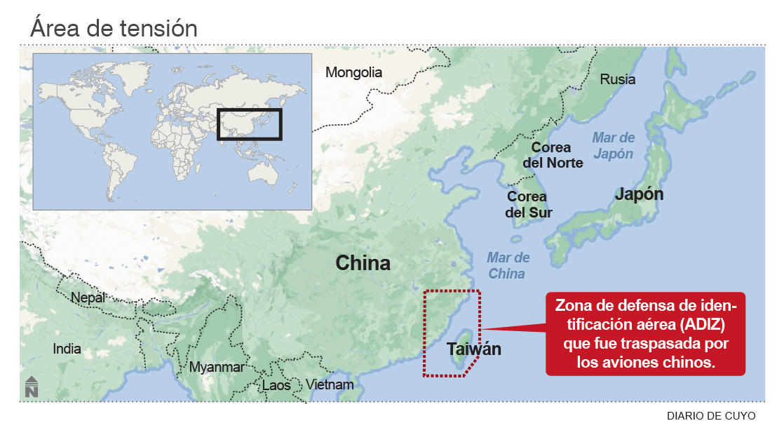 China utilizó 71 aviones de combate durante el fin de semana pasado, en ejercicios militares alrededor de Taiwán. Al menos 47 de los vuelos traspasaron la zona de defensa de identificación aérea (ADIZ) de la isla, informó hoy el Ministerio de Defensa taiwanés. En una actualización diaria publicada en Twitter, Taipei precisó que en el ejercicio participaron seis aviones SU-30, uno de los más avanzados que posee China. En cambio, el Ejército Popular de Liberación (EPL) chino dijo que ayer realizó un "ejercicio de ataque" en respuesta a "provocaciones" que no detalló y a una "colusión" entre Estados Unidos y Taiwán, reportó la agencia de noticias AFP.