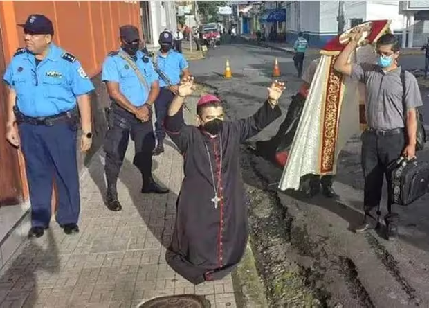 Un obispo de Nicaragua es arrestado por la policía del dictador comunista Daniel Ortega, cuyo régimen persigue a los miembros de la Iglesia Católica, entre otros.
