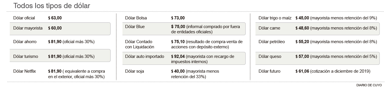 A cotizaciones de esta semana los diferentes valores de la moneda estadounidense son los expuestos (ver infografía) más la corrección que corresponda al par de días desde que cerró esta nota. Como se ve en las dos franjas, tiene valor alto el dólar que cobra el Estado y bajo el de la producción. Se debatía sobre si finalmente habría algún tipo de cambio diferencial pensando siempre en el gasto en el exterior, viajes, compras etc., pero nunca en 15 diferentes cotizaciones y es posible que todavía falten algunas que por ahora parecen haber quedado afuera, entre los cuales están las principales exportaciones de San Juan, por ejemplo, los metales. Toda sana filosofía impositiva sugiere como condiciones universalidad y equidad. Va en contra de eso la suba de alícuotas a partir de cierto monto de ingresos y bienes personales, lo cual también ha demostrado su ineficacia porque los afectados tienden a ocultar y falsear declaraciones. Ni qué decir la amenaza a la inversión externa directa ya en límites extremadamente bajos. Esta falta de estabilidad de criterios ahuyenta todo proyecto de mediano plazo, es imposible prever qué decidirá cada nuevo gobierno. No hay forma de sacar a un país de la pobreza con una tasa de inversión menor al 30 por ciento y estamos lejos de llegar al 20. Algo de lo más curioso es que un gobierno del mismo signo y con los mismos protagonistas, dispuso por ley una fórmula para ajustar el beneficio de los jubilados y ahora suspende esa medida. Para colmo dejará a algunos con el privilegio de la corrección trimestral y a la mayoría no, es decir, se beneficia a quien tiene mayor poder de lobby. A la vez dispone un bono de 10 mil pesos en dos cuotas para quienes reciben la jubilación mínima y el monto total equivale a lo mismo que se quitará a los pasivos por falta de ajuste. Como quienes reciben la mínima en su mayoría nunca aportaron al sistema, son los jubilados genuinos los que financian el bono de los que no aportaron. Incoherencia perfecta. El privilegio de que queden afuera de esta restricción legisladores, jueces y funcionarios de alto rango nos exime de algún comentario, es algo que se califica solo. Puede entenderse que todo se trate de un problema de caja, pero se suma un antecedente más de ausencia de un criterio totalizador que mire lo inmediato junto con el futuro para que no vuelva a ser pan para hoy y hambre para mañana. Si se esperaba un plan maestro de estabilización, habrá que seguir esperando. Por ahora lo único firme es otra devaluación asimétrica como las de otras veces. La esperanza se cifra en un shock de consumo que aliente la salida de la recesión. Esperemos que se dé.