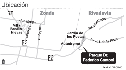 El "Parque de Zonda", como comúnmente le llamamos los sanjuaninos, o el "Parque Bernardino Rivadavia", como lo fue al momento de su inauguración, se extiende a lo largo de la Quebrada de Zonda, en Rivadavia, situado al costado de la Ruta Provincial Nº12, al pie de la Sierra Chica de Zonda. Al asumir por segunda vez el Gobierno de San Juan, Federico Cantoni enfrentó problemas de desocupación, por lo tanto, el inicio de numerosas obras públicas que se demoraron, entre ellas el Parque Rivadavia. Llegaron a San Juan obreros extranjeros, principalmente europeos, que dejaban sus tierras por la guerra y que, enterados de la importancia y magnitud de las obras públicas que se realizaban por esta parte del mundo, llegaban para trabajar en las "minas de Zonda”, nombre que dieron los yugoslavos a los túneles abiertos en los cerros de Zonda, con el objeto de hacer exploraciones mineras. Más de mil obreros, muchos de ellos checoslovacos, trabajaron en el proyecto, como es el caso de Josip Broz (posteriormente Mariscal Tito de Yugoslavia) quien trabajó allá por la década del treinta. El 25 de junio de 1925, la Cámara de Representantes sancionaba la Ley 162, que declaraba de utilidad pública el valle denominado "Quebrada de Zonda”. en esa época, a Cantoni le agradaba "supervisar” en persona, el adelanto de obras. No se quedaba tranquilo con la información que les suministraban sus funcionarios. Allí, "in situ”, subía cerros, conversaba con obreros, debatía con ingenieros y, hasta daba órdenes. Supervisaba toda obra que ejecutaba su gobierno. El parque fue inaugurado el 11 de septiembre de 1932, en homenaje al Gran Maestro de América. El terreno con cerros y piedras se transformó en atractivo turístico de la provincia. La Quebrada, sólo se utilizaba para transitar hacia los valles cordilleranos. En el contexto de esta obra, el Cable Carril permitía el ascenso directo a caminos, sendas y la propia falda del cerro. El Escudo Nacional fue una obra de arte, realizado con álamos plateados, coníferas, ceibos y variedades de arbustos. Las acequias contribuyen en este atractivo cultural, marcando la figura de nuestro símbolo patrio. Algo similiar ocurre con Los Libros de Piedra: se sube por camino de tierra, al de la Ruta 12, casi frente a la antigua Bodega Romero. Es necesario internarse en la montaña misma que para llegar a este monolito cultural. El monumento está compuesto por dos libros abiertos, realizados en piedra y separados por una distancia de 500 metros aproximadamente. Desde allí se puede apreciar el Valle del Tulum, el Escudo Nacional y el Autódromo. Mientras, la tradicional Cabeza del Indio fue esculpida por el artista Luis Perlott. Una obra de cemento de gran tamaño levantada sobre un gran pedestal de roca, que evoca la presencia aborigen en San Juan. Desde la Cabeza del Indio, se tiene una hermosa vista de los 7 Caminos y sus túneles. Precisamente, la obra de Los Siete Caminos y los Túneles consiste en 7 niveles, desafiando la dureza de la roca, comunicados entre sí mediante túneles. Para llegar allí, se podía escalar el cerro o bien, subir por el cable carril. En este contexto, según la Ley 3.910, por iniciativa del entonces diputado provincial Rubén Antonio Hidalgo, la Cámara de Diputados sanciona el 7 de mayo de 1974, la Ley Nº 3.910 en reconocimiento a quien fuera su principal creador, denominándolo, "Parque Provincial Dr. Federico Cantoni”.