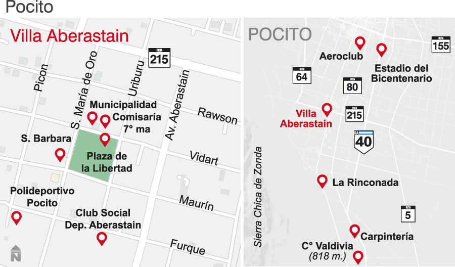 No es mi intención cuestionar esta temática, simplemente doy a conocer concisamente los datos o testimonios revisados. Y es precisamente esta leyenda, uno de los rasgos que identifican al pocitano. El departamento se encuentra a casi 20 kilómetros, al sur de nuestra ciudad capital. Villa Aberastain es el núcleo poblacional principal, debe su nombre a Antonino Aberastain, llamado "el mártir de la Rinconada”. Precisamente entre las localidades importantes están: La Rinconada, Carpintería, Quinto Cuartel. En la última localidad nombrada, según la tradición popular, sucedió un episodio trágico, que inspiró a Miguel Martos a componer la conocida tonada "Allá en el Quinto Cuartel”.