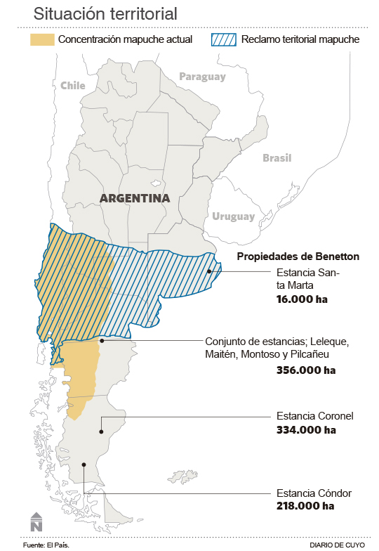 Actualmente hay focos de conflicto que abarcan buena parte del sur argentino. 1-En la zona de Vaca Muerta, sitio que ha adquirido un interés muy especial por sus recursos en hidrocarburos, tres comunidades mapuches reclaman unas 20.000 hectáreas en áreas de explotación de YPF y otras empresas. 2- En Villa Mascardi, donde recientemente se han producido varias tomas de terrenos, el RAM (Resistencia Ansestral Mapuche) ocupó un sector del parque nacional y hay más de 10 predios tomados por otras comunidades. 3- Ocupaciones efectivas se localizan en Estancia Leleque, sobre la ruta 40. En este lugar el RAM ocupó 700 hectáreas del Grupo Benetton. 4- Otros conflictos se localizan en Villa La Angostura donde hay reclamos de tierra de tres comunidades, uno de ellos dirigido a Vialidad Nacional. 5- Finalmente, hay reclamos de obras en las proyectadas represas a construirse en Santa Cruz, donde la comunidad Mapuche-Tehuelche exige una consulta previa como pueblo originario para que las obras avancen.