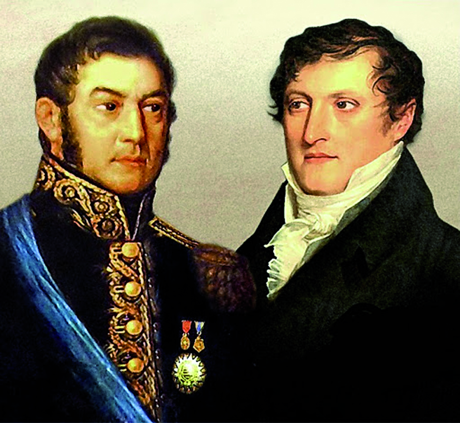 El General José de San Martín nació en el año 1778 y Manuel Belgrano en 1770. Quizás ambos próceres contemporáneos estaban predestinados para complementarse. Manuel Belgrano creó nuestro pabellón nacional y San Martín lo llevó triunfante a través de los Andes para liberar tres naciones. Los dos patriotas, artífices de la independencia, mostraron espíritu de orden y disciplina, tenían predominio de principios y ambos carecieron de ambiciones personales. Indiferentes a la política interna en época de Triunvirato, poseían identidad de ideas, ajenas a divisiones mezquinas. Pusieron toda su energía, concentraron todos sus esfuerzos en el ideal de emancipación. El Gran Capitán admiraba la generosa elevación del carácter de Belgrano y el creador de nuestra bandera destacaba en el Héroe de los Andes ese tacto seguro para juzgar a los hombres y saberlos liderar. Manuel Belgrano recibía cartas de San Martín con nociones de estrategia militar y al contestarle, le manifestaba su admiración, considerándolo el genio tutelar de América del Sur. En enero de 1814 se encontraron en un histórico abrazo en la Posta de Yatasto, en la provincia de Salta. El vencedor en Salta y Tucumán dejó la fecunda semilla de la instrucción y nos legó el símbolo de nuestra identidad. El Padre de la Patria superando las más arduas dificultades, aseguró la libertad de Argentina , Chile y Perú. En ambos había abnegación, patriotismo, perseverancia y desinterés por los reconocimientos individuales. Escribieron las páginas solemnes de la Historia con entrega y austeridad. Brillaron y brillarán siempre como hombres de acción y de pensamientos fecundos. Pusieron su vida al servicio de la libertad de la Patria. Fieles a los objetivos trascendentes, San Martín y Belgrano buscaron la luz entre las tinieblas y enfrentaron muchos escollos por sus ideales patrióticos. Bartolomé Mitre dijo que si Manuel Belgrano era acreedor de la corona cívica, el General José de San Martín era digno de la palma del triunfador.