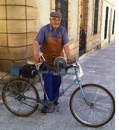 Al borde del ardoroso medio día sanjuanino, jornada infernal, luego de varios años volví a escuchar su ruego, aquel pregón que me acompañó las sorpresas de la niñez: silbido dulce, escalonado en notas acariciadas que llenaba de armonía los oídos. Ahí estaba llena de gracia la vieja y estridente flautita de plástico que sobre sus labios deslizaba el canto de pájaros vírgenes en tonos ascendentes y descendentes. Allí estaba él con su singular bicicleta, que sin duda había armado con retazos sentimentales de la calle, extraño vehículo al que había incorporado un mecanismo de correas que gracias a un rápido movimiento mecánico convertía en piedra de afilar.