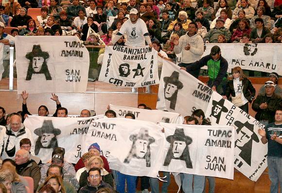 En el Centro de Convenciones de Las Heras y 25 de Mayo, la ministra disertó ante un auditorio notoriamente diferente del que habitualmente recibe el coqueto escenario dedicado a conferencias o entregas de títulos. Todas las barandas mostraban banderas que parecían tener la misma tipografía para las letras inscriptas con el nombre de Tupac Amaru y el mismo molde para la figura del héroe indígena de los Incas masacrado por los españoles. La pregunta era, entonces: ¿quiénes son los de Tupac Amaru, que decían desde sus banderas llegar desde todo el país?. La respuesta se conoció la semana pasada.