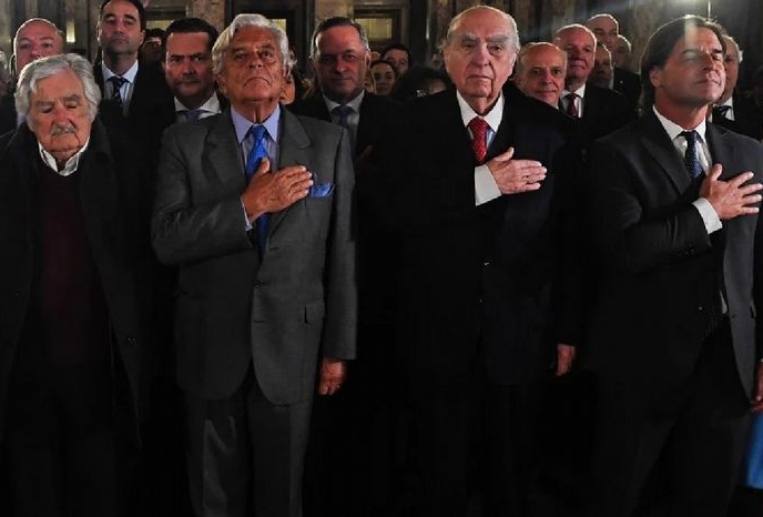 El presidente uruguayo Luis Lacalle Pou y los exmandatarios Julio María Sanguinetti, José "Pepe” Mujica y Luis Alberto Lacalle Herrera recordaron juntos los 50 años del inicio de la dictadura cívico-militar, que el país vecino vivió entre 1973 y 1985. Se trata de un gesto democrático único.