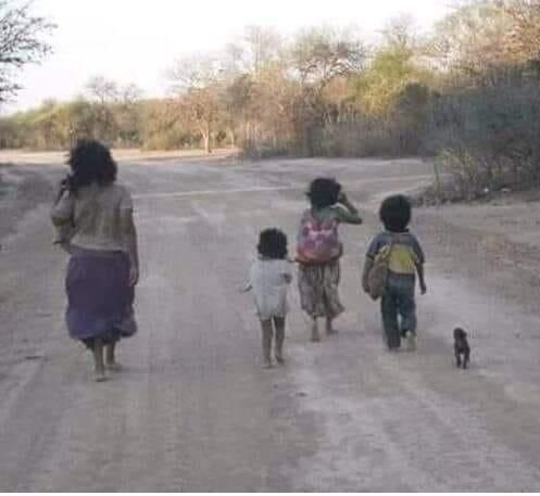 Desgarrando, la imagen me salta al pecho. El texto del Face es suficiente: "..esto es Argentina, Provincia del Chaco. Esta familia camina kilómetros para tomar agua y comen lo que el monte les da. Pero el monte se achica, para todos, tristeza pobreza desolación".