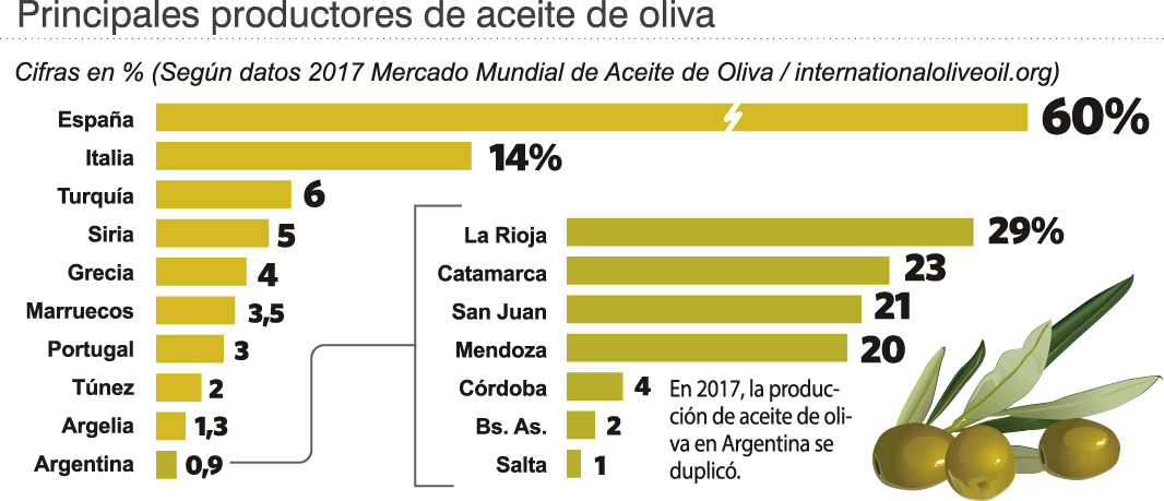 El hecho de que la olivicultura argentina haya logrado niveles de exportación de aceites y aceitunas que la colocan en primer lugar entre los países de América y en el quinto o sexto puesto a nivel mundial, debe servir de aliciente para que el sector reciba todo el apoyo en busca de seguir avanzando en las exportaciones. El sector está empeñosamente trabajando para que los 200 millones de dólares comercializados el año pasado se vean incrementado esta temporada, pero para ello se requiere que el esquema exportador no actúe en contra de este objetivo y, que por el contrario, contribuya a facilitar la salida y colocación de este producto en tradicionales y nuevos mercados.
