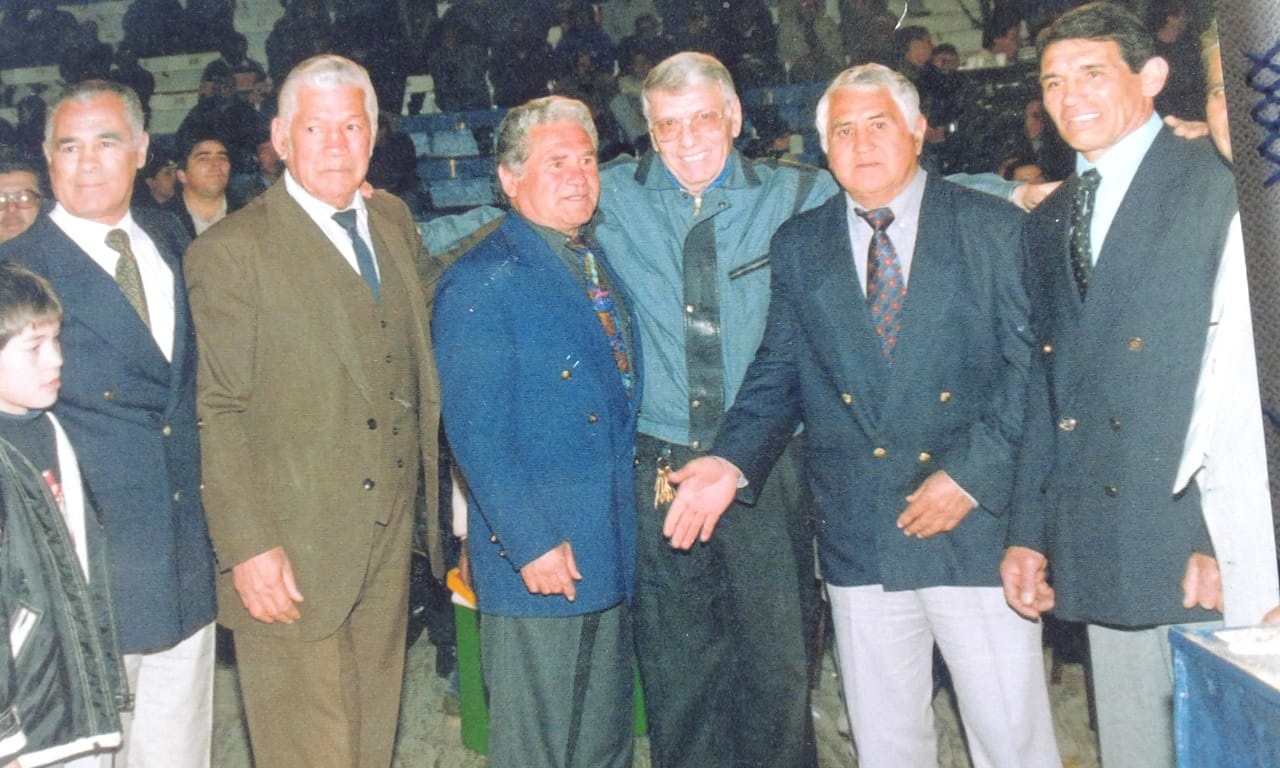 En los años 70, nos tocó una racha de boxeadores de gran nivel, que hizo que San Juan fuese una plaza muy apetecida por los mejores valores del box nacional de entonces. Una noche especial, fue la que reunió en un festival homenaje, a cinco grandes de nuestro boxeo. El amigo José Luis Carbajal nos acercó esta foto donde se lo ve junto a Raúl Venerdini, Federico Guerra, Rodolfo Catalini, Julio Catalini y Víctor Echegaray. Guerra era de una generación anterior, la de los años 50, quien llegó a combatir en el Luna Park, nada menos que con el gran puntano, José María Gatica, "el Mono", a estadio lleno. Perdió porque a Gatica no había con qué darle, pero quedó grabada en la memoria su gran actuación. También sostuvo una docena de peleas, por distintos puntos del país, con el legendario panameño – argentino, Luis Federico Thompson. Los otro cuatro tuvieron su época de esplendor, alrededor de los años 70. Entre ellos, dos campeones argentinos y sudamericanos, Raúl Venerdini y Federico Echegaray. Éste tuvo una jornada que pudo ser de gloria, en 1972 en Honolulu, pero que le escamotearon los jueces, frente al entonces campeón mundial, el filipino Ben Villaflor. Fue por el título mundial. Villaflor terminó con el rostro tumefacto, pero la vieron empate. Reconocería después "usted es argentino, yo de Hawái. Le pido perdón por lo que pasó, pero no todos somos delincuentes". Echegaray le ganó el título argentino al mendocino Juan Domingo Corradi, por nocaut en el Luna Park, en 1971. El título sudamericano lo conquistó frente al paraguayo Bernardino "Kid" Toledo por nocaut técnico en Buenos Aires. También combatió por el título mundial con el japonés Kuniaki Shibata, y perdió, en los Estados Unidos. Raúl Venerdini, ganó el título argentino frente a Héctor Jorge Pace, en el estadio Luna Park. Y el título sudamericano ante el mendocino Carlos Aro, en pelea realizada en el estadio Aldo Cantoni. Tuvo una pelea estelar frente al entonces campeón de mundo, el italiano Bruno Arcari, con quien perdió en ese país. En cuanto a Julio Catalini, al que le llamaban "Polvorita" por su fuerte pegada, tuvo su noche soñada en San Juan frente al campeón argentino Juan Aranda, con quien perdió por puntos, por el título. Entre otros, perdió en Mendoza con el gran Nicolino Locche, antes de que éste fuera campeón mundial. Otra gran pelea, muchas veces postergada, fue con el tucumano Horacio "Pantera" Saldaño, quien lo venció por nocaut en Tucumán. Una pelea extraordinaria que ganó por puntos fue ante el zurdo cordobés Juan Carlos Salinas. Por último, Rodolfo Catalini, tuvo una larguísima campaña como amateur, y como profesional tuvo la que se considera su gran noche, fue ante el fortísimo porteño Vicente Derado, quien traía un gran palmarés, pues anduvo por todo el mundo. Le había quitado el invicto a Nicolino Locche, y combatido dos veces por el título mundial. Rodolfo empató con él, en recordada pelea realizada en San Juan. Entre sus rivales más conocidos, le ganó a Hugo Rambaldi, empató con Omar Gottifredi, también con el brasileño Josué de Moraes, y perdió con Locche y Saldaño. El "Motoneta" Catalini, así como todos los que figuran en la foto, fueron garantía de espectáculo y por años mantuvieron vivo el deporte de las "narices chatas" en nuestra provincia. Los datos fueron extraídos de la memoria y del sitio web "Box Rec".