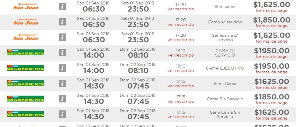Viajar en colectivo a Buenos Aires, según puedo consultarse por internet, en un servicio semicama, sin servicio, cuesta 1.650 pesos, es decir 3.250 pesos ida y vuelta. Es viaje es de 17 horas.
