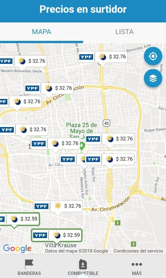 Tiene precios de cada uno de los combustibles (naftas y gasoils), las diferentes banderas (YPF, Schell, Axion, entre otras). Para el que viaja es una herramienta muy útil.