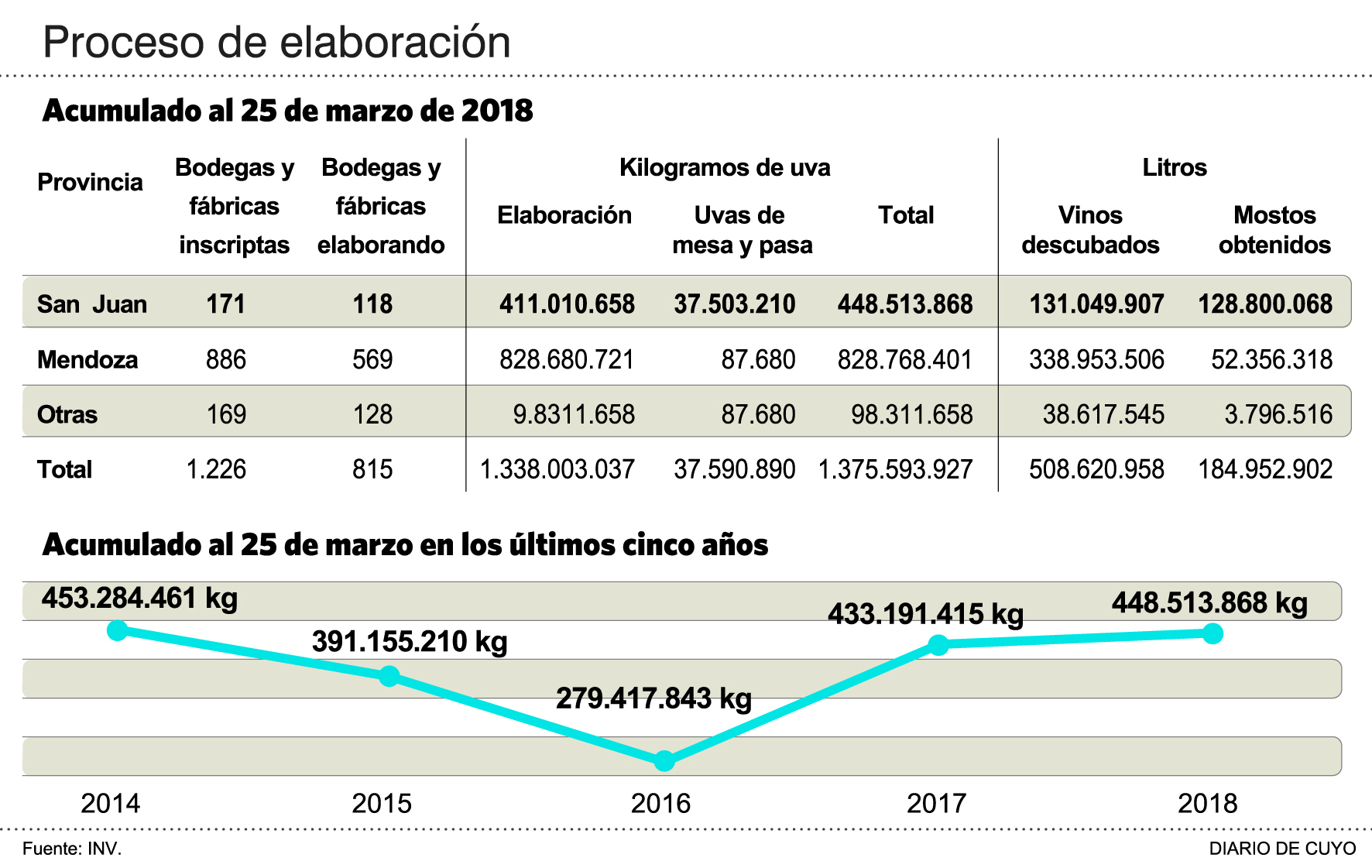 En las entidades agregaron que reina la preocupación por una cosecha atrasada debido a que se ha profundizado la falta de mano de obra. “”Por eso y porque hay menos uvas por las pestes de la humedad, aun no se alcanzan los kilos de otros años de producción normal”, destacó por ejemplo Ramos. En efecto, a la semana 17 de cosecha (al 25 de marzo último) se había cosechado en San Juan 448,5 millones de kilos de uvas, cuando a esta altura ya debería haber superado los 500 millones.