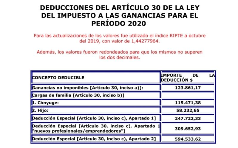 Para la suba en el mínimo no imponible se tuvo en cuenta la variación del índice salarial RIPTE (Remuneración Imponible Promedio de los Trabajadores Estables) entre octubre de 2018 y octubre pasado, que fue de 44,28%.