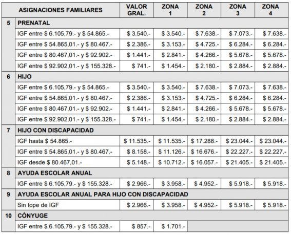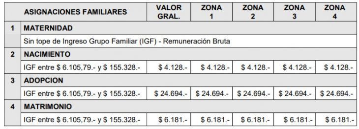 A continuación, el detalle de las asignaciones familiares para septiembre: