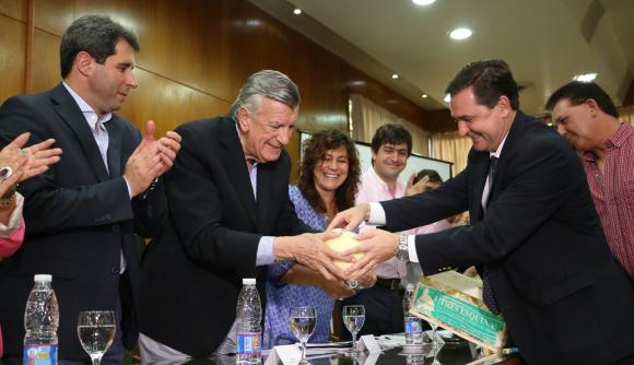 Con la sola excepción del ministro Carlos Casamiquela, que se encontraba de viaje en el exterior, el gabinete a pleno del Ministerio de Agricultura de la Nación arribó ayer a la provincia con 8 millones de pesos para fortalecer planes y proyectos productivos. El motivo del acto de ayer en Casa de Gobierno fue el cierre del “Año Internacional de la Agricultura Familiar”, en el que además, las autoridades nacionales entregaron el reconocimiento de la Indicación Geográfica del melón de Media Agua.