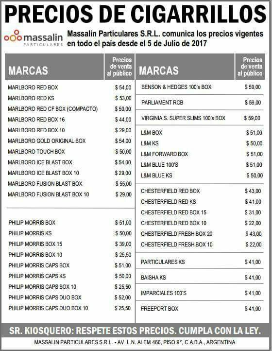 A través de un comunicado, Massalin Particulares dijo que "desde el fuerte aumento impositivo decretado por el gobierno nacional en mayo de 2016, la carga fiscal alcanza el 80% del precio de final de los cigarrillos, lo que significa que es la más alta de la región y una de las más elevadas a nivel mundial".