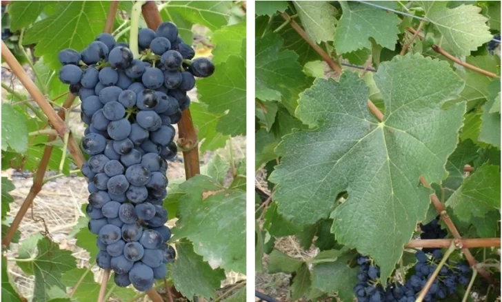 Ampelográficamente se puede distinguir por su hoja trilobada con su lóbulo central plano o plegado asimétricamente los laterales doblados hacia arriba, opaca, con indumento telaraña abundante y motitas. Posee seno peciolar en U y punto peciolar blanquecino; racimo mediano, bien lleno a compacto, cilíndrico y bayas elípticas.