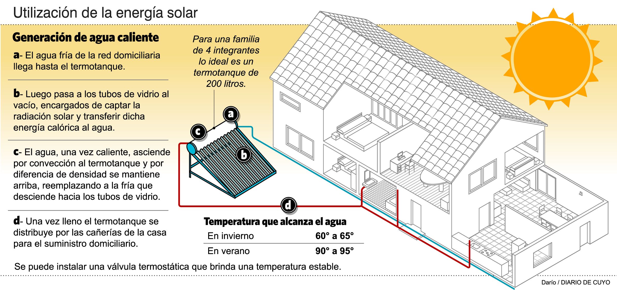 En la temporada invernal, pese a las bajas temperaturas, también hay radiación solar que puede ser aprovechada para los termotanques solares. Es el caso de Alemania, un país que está en una latitud similar a la de la Patagonia y que usa esta tecnología, lo que demuestra que el sistema funciona.