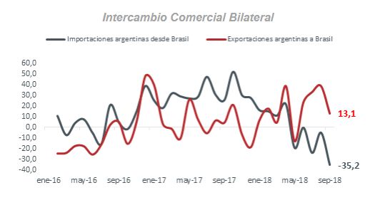 "Argentina logró revertir el rojo comercial con Brasil por primera vez desde el 2014. Esto se explica por un fuerte retroceso de nuestras importaciones (principalmente vehículos de pasajeros, transporte de carga y maquinaria) como consecuencia de la más que notable depreciación del peso y la recesión económica por la que transita nuestro país",informó hoy Ecolatina en base a datos oficiales brasileños.