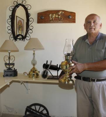 A la primera mirada, cuesta reconocer la vieja olla de hierro, ahora arenada y pintada, en la moderna lámpara en que se convirtió. Pero al recorrer el taller de Manuel Alberto Rivera (57), uno se puede topar con objetos del pasado inimaginables que ahora tienen nuevo uso: la antigua máquina de metal de pulverizar las plantas, la moledora de maíz o las otrora infaltables lámparas a kerosene Rayosol o Petromax, todas transformadas ahora en veladores.