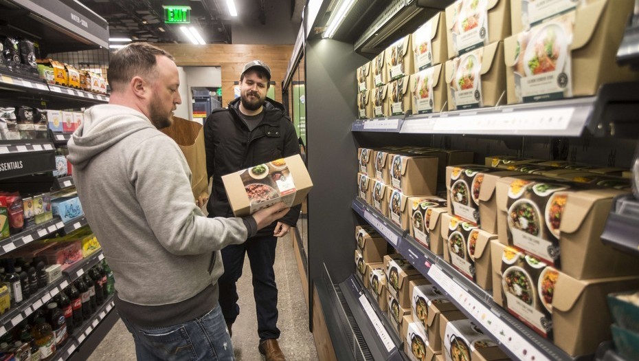 El primer local de Amazon Go fue inaugurado en el centro de Seattle, con una superficie de 170 metros cuadrados. En sus góndolas se pueden conseguir comidas elaboradas para el desayuno, el almuerzo o la cena. También hay una selección de ensaladas, sándwiches y bebidas, vinos, cervezas y algunos productos frescos, como carne o pollo.