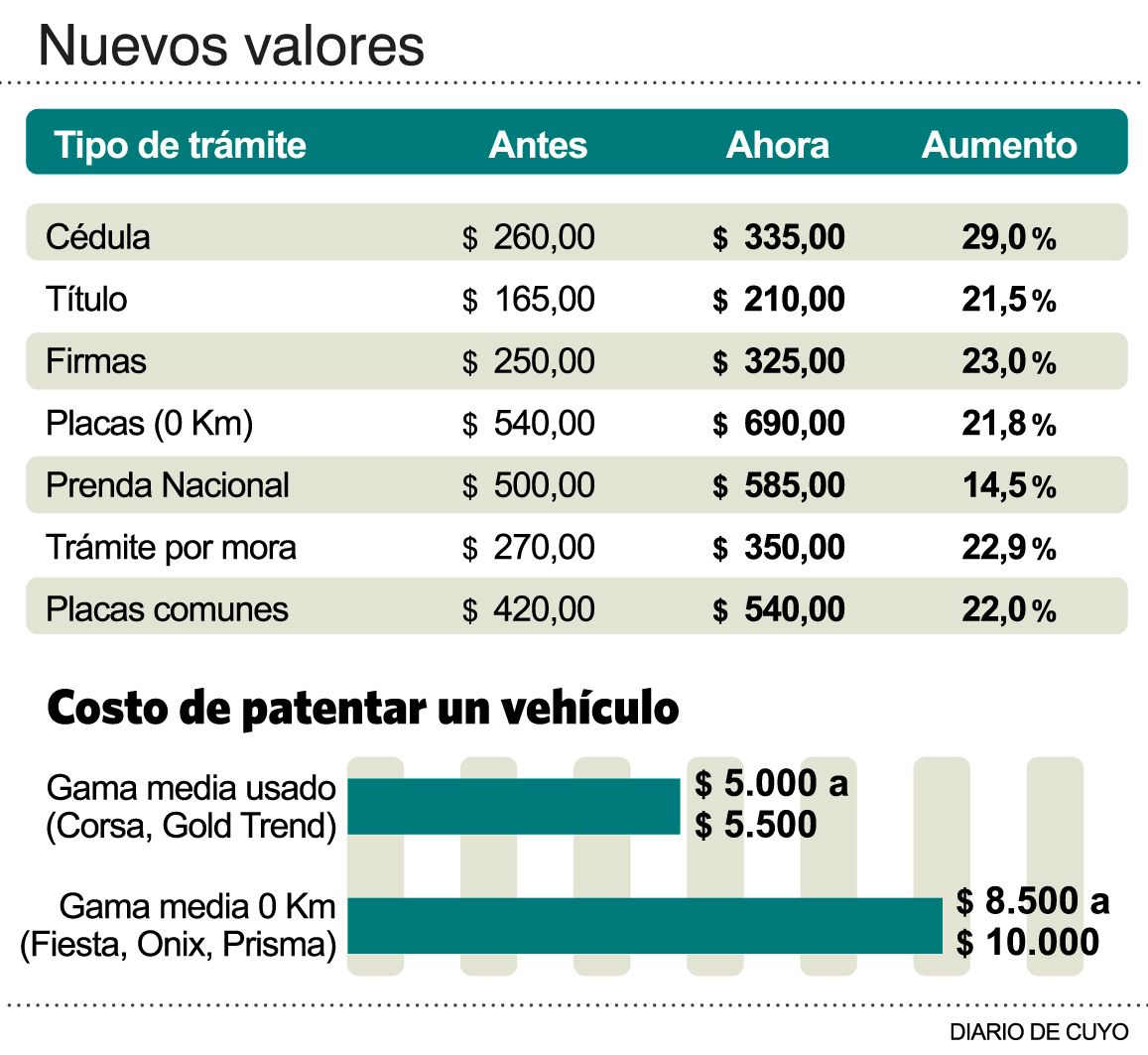 En cuanto a las tarifas que se abonan para realizar los trámites, por resolución del Ministerio de Justicia y Derechos Humanos de la Nación, también tuvieron una suba que llega a casi el 30%. La normativa indica que a los fines de “garantizar los ingresos del ministerio provenientes de los aranceles que por los servicios registrales abona el público usuario, deviene necesario disponer medidas tendientes a mantener los aranceles a valores constantes (actualizados por inflación)”. Así, por ejemplo, la “certificación de firmas” pasó de costar 250 a 325 pesos y la expedición de placas metálicas para una unidad 0 Km saltó de 540 a 690 pesos (ver infografía). Estos valores no se ajustaban desde mayo de 2017.