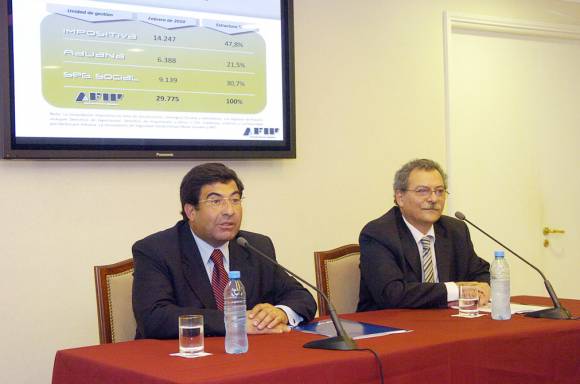 Echegaray y Pezoa brindaron una conferencia de prensa en la sede de la AFIP luego de la reunión que mantuvieron junto al ministro de Economía, Amado Boudou, con la presidenta Cristina Fernández de Kirchner en la Casa de Gobierno, donde le anticiparon a la jefa del Estado los números de la recaudación de febrero.