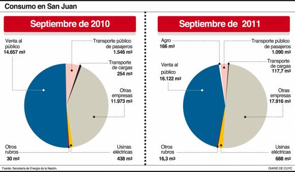 Del análisis de los datos se desprende que se ha destinado, en lo que va de este periodo, un 10% más de naftas para la venta al público. Pero el sector que ha recibido este año un refuerzo sensible es el de las empresas e industrias, quienes están comprando un 49.63% más que el 2010. En este último caso de los 11.973 m3 consumidos al año pasado, se pasó a los 17.916 m3.