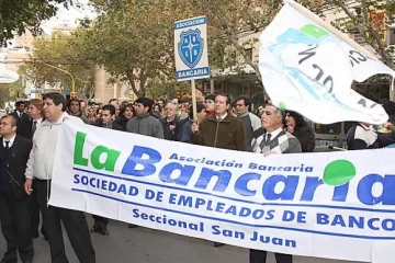 Algunos trabajadores comentaron durante la movilización que "hoy despertó el bancario en San Juan", aludiendo a la cantidad de años que llevaban sin salir a calle a reclamar por sus salarios.