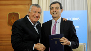 Buenos Aires, 18 de julio.- La concreción de una nueva estación de tren en San Juan, con la remodelación de las vías que llegan desde Mendoza, tuvo un paso muy importante en el día de hoy cuando el Ministro del Interior Florencio Randazzo y el Gobernador Gioja firmaron el contrato de obra y de esa manera dar inicio a la misma.