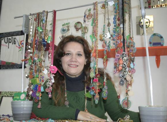 Un stand con piezas que combinaban cables y lanas, en una feria de diseño en San Luis; fue la inspiración. ‘’Voy a probar esto’’ se dijo Roxana Quiroga (39) hace dos años, y sin estudiar ninguna técnica empezó a entrecruzar alambres y a forrarlos con hilos de tapicería y cintas en forma artística, creando collares, aros y prendedores originales. En pocos meses armó una colección completa de bijouterie y se decidió a participar en una feria de diseño de las que se realizan en San Juan para emprendedores independientes. ‘’Fue mi primer venta, y vendí todo, eran como 100 collares. Recuerdo que no llegué a los 10 días que duró la feria y eso que amanecí varias mañanas haciendo más piezas!’’. Con su primer éxito asegurado, decidió dedicarse de lleno a una actividad en la que fue autodidacta. ‘’Mi marido fue a comprarme las primeras pinzas, y al principio usaba alambre de ferretería, ahora sigo con otros tipos, además de hilos de tapicería y todo tipo de cintas’’, explicó.