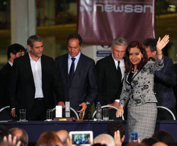 La jefa de Estado estuvo acompañada por el gobernador bonaerense, Daniel Scioli; el ministro de Economía, Axel Kicillof; el ministro de Trabajo, Carlos Tomada; el secretario de la CGT, Antonio Caló; y el intendente de Avellaneda, Jorge Ferraresi.
