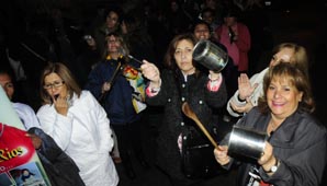 San Juan, 14 de junio.- Un nuevo "cacerolazo" tuvo lugar esta noche alrededor de la Plaza 25 de Mayo. Es que, al igual que los dos jueves anteriores pero con una mayor concurrencia, más de 200 personas marcharon en protesta de las restricciones al dólar, la inseguridad y la situación por la que atraviesa el país.
