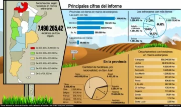En el otro extremo, Santa Lucia es el que menos propietarios foráneos tiene, con tan sólo 2,55 hectáreas. Los datos surgieron de declaraciones juradas, por lo que no se difundirán los nombres de los propietarios, pero se sabe que mayormente tienen explotaciones vitivinícolas, minería metalífera y no metalífera, y agroindustria. Y en cuanto a las nacionalidades, la mayor extensión está en propietarios de origen suizo, con 443.858 hectáreas, seguidos de los australianos (149.988,90 ha) y holandeses (79.405,08 ha). También hay chilenos, belgas, franceses y uruguayos. Y los estadounidenses son los que menos tierras tienen en San Juan, apenas 12 hectáreas.