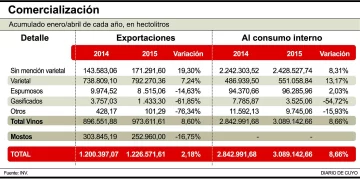 Si bien es cierto que se exportó menos volumen, la razón de que la caída en facturación sea tan fuerte responde a los precios en el mercado internacional, que están a la mitad de hace un año debido a una mayor producción del jugo de manzana que es un reemplazo natural y más barato. A eso se suma la falta de competitividad del mosto argentino frente al de otros países competidores, por el aumento de costos en dólares que han sufrido los elaboradores y la inflación interanual calculada por el sector en 30%. “El precio internacional se mantiene en 700 dólares la tonelada, no se ha modificado”, lamentó ayer Sergio Colombo, gerente de la Cámara de Exportadores de Mosto; al ser consultado. No obstante, el directivo destacó la leve recuperación que ha tenido la cantidad de volumen exportado en abril respecto a marzo, que pegó un salto del 57% de un mes a otro. “Un poquito se ha recuperado, veníamos exportando 7.000 toneladas mensuales y ahora pasamos a 11.000 toneladas”, dijo Colombo. Agregó que el aumento se debe a que salió a la venta el mosto nuevo, recién elaborado con las uvas de la cosecha 2015, un producto que siempre es más demandado que el de la temporada anterior que se estuvo vendiendo en los primeros tres meses del año. En la Cámara del Mosto están esperanzados en que si se sigue exportando en lo que resta del año alrededor de 10.000 toneladas mensuales se llegará a un stock equilibrado a fin de año, teniendo en cuenta que se acaban de elaborar 125.000 toneladas de mosto, que sumadas las 50.000 tn que quedaron del año pasado totalizan 180.000 toneladas este año. Además el mercado interno demanda unas 20.000 toneladas. Las exportaciones de mosto, sumadas a las de vinos -que en abril y en el cuatrimestre se recuperaron (ver aparte)- subieron en total 2,18% en volumen y cayeron 6,37% en dólares, frente a igual lapso del año pasado.