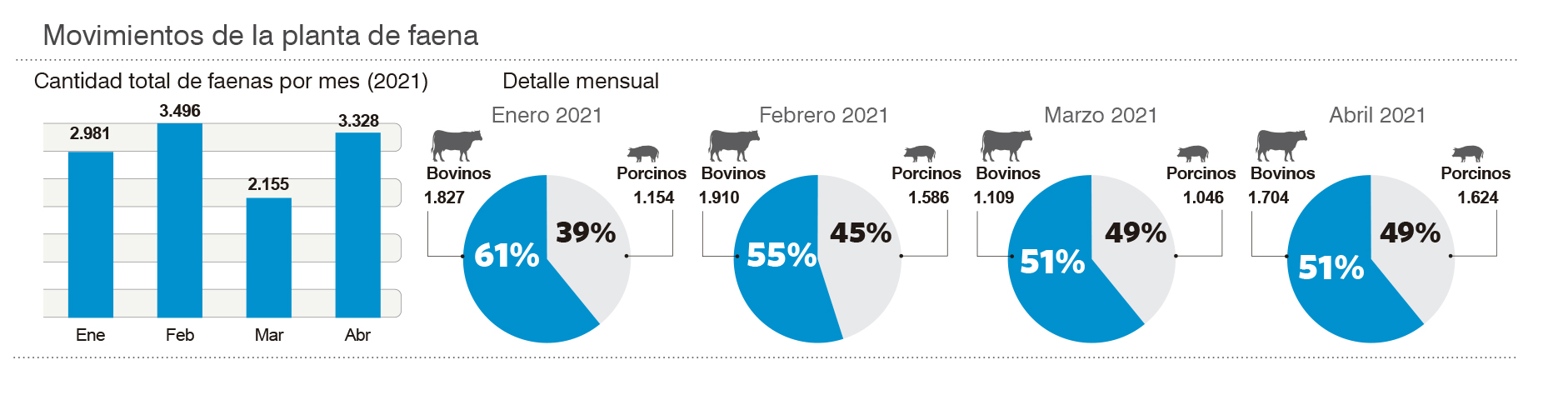 En San Juan se consumen unos 100 millones de kilos de carne al año y los vacunos vienen en su mayor parte de las provincias de Córdoba y La Pampa, a través de entre 600 a 800 viajes mensuales en camiones. Y San Juan sólo produce, al año, el equivalente al consumo de un mes, que oscila en los 8 millones de kilos. Una parte de esa hacienda se faena en la planta ubicada en Rawson (ver infografía).