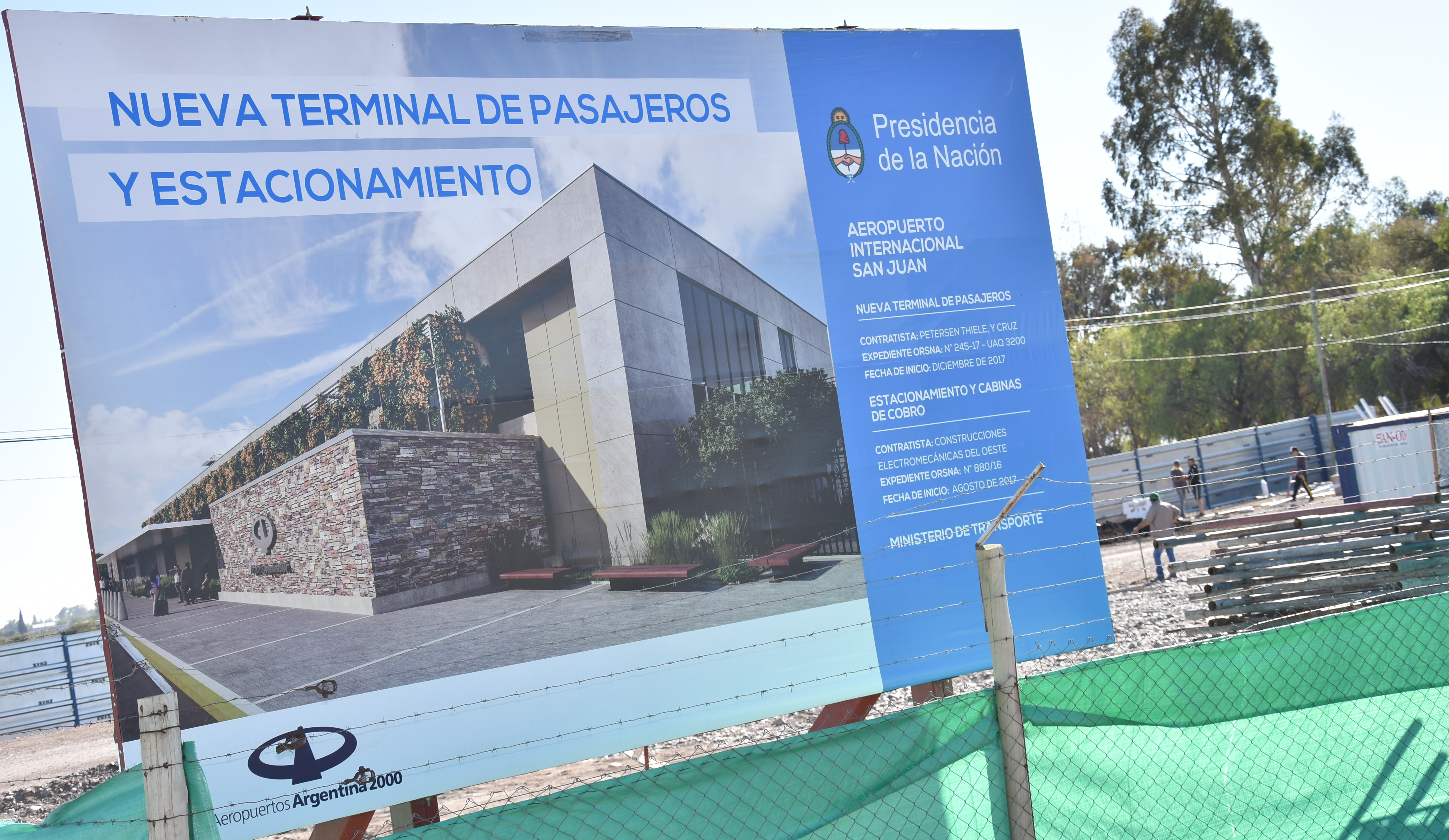 La construcción de la nueva terminal del aeropuerto de San Juan contará con una superficie total de 4900 m2 -la anterior, que será demolida, tenía 1706 m2- y tendrá dos pisos. Contará además, con dos puentes fijos, con sus mangas. Se repavimentarán la pista y calles de rodaje y la plataforma comercial se ampliará de 22.000 m2 a 42.000 m2, duplicando su capacidad para recibir vuelos internacionales.