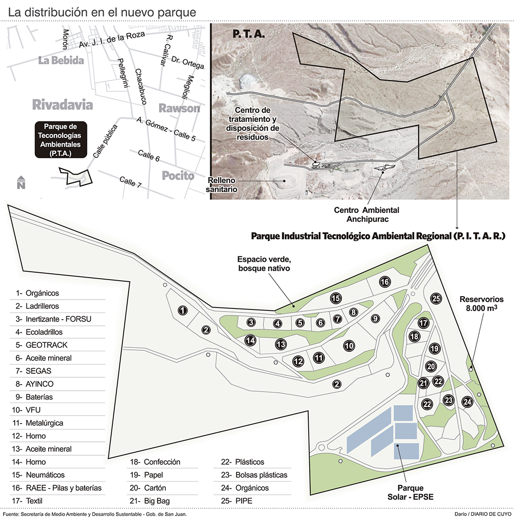 El complejo fabril será la tercera pata del Complejo Ambiental San Juan, donde ya funciona el centro de tratamiento de residuos urbanos y está próximo a inaugurarse el Anchipurac que, entre otras áreas, contendrá un Centro de Monitoreo Ambiental, la Agencia de Cambio Climático y el Observatorio de Residuos.