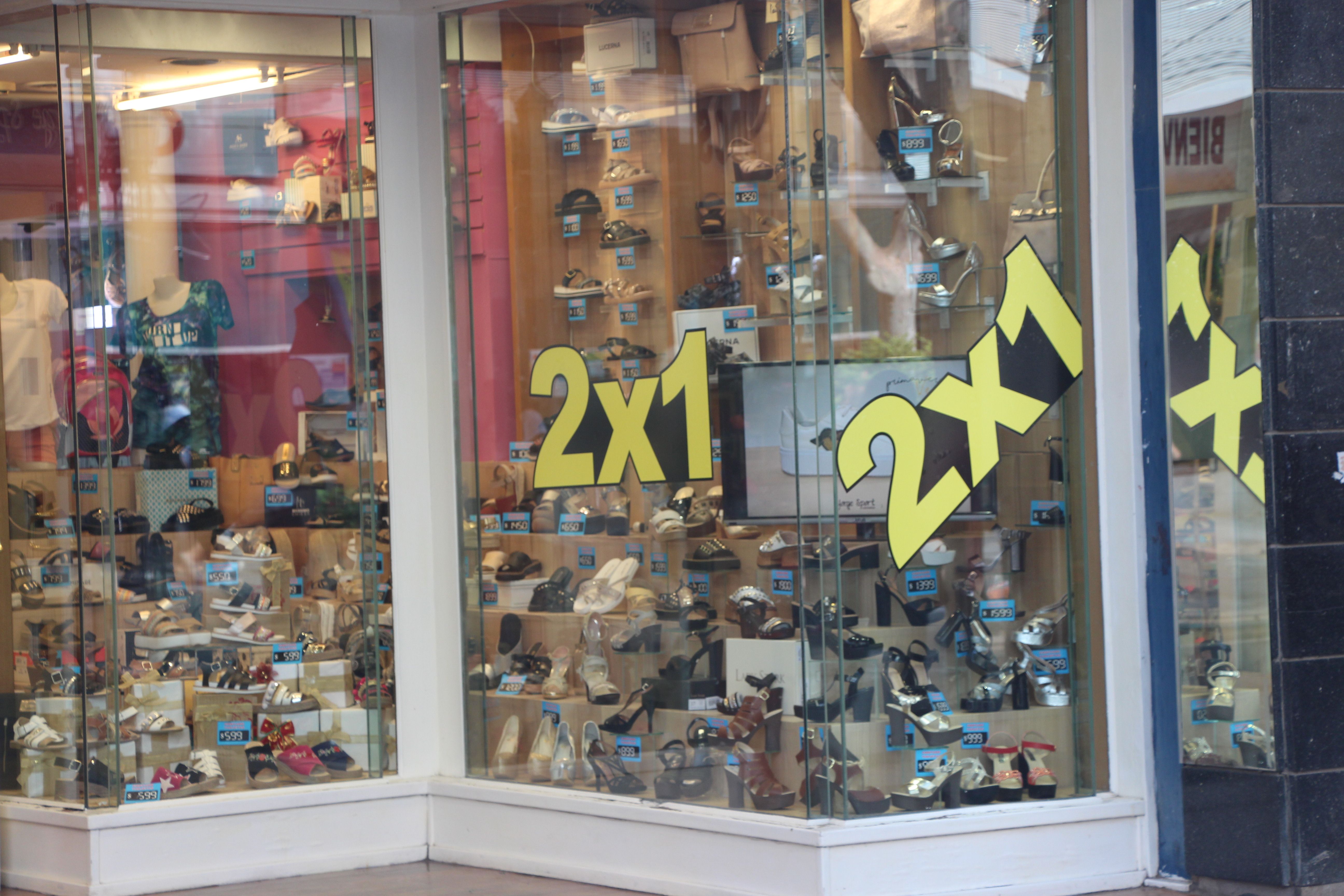 En varios locales de calzado los comerciantes recurrieron al  famoso 2 x 1 que permite a los clientes pagar sólo el par más caro y llevar el segundo sin costo.
