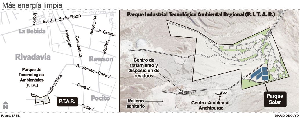 En el Parque Industrial Tecnológico Ambiental Regional (PITAR), en el límite Sur-Este de los departamentos de Pocito y Rivadavia ya comenzó a construirse la segunda planta solar fotovoltaica con fondos exclusivamente de la provincia.