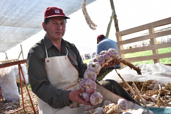 Un grupo de mendocinos, de Junín, llegaron a San Juan para mostrar sus habilidades, cómo hacer una ristra de ajos.