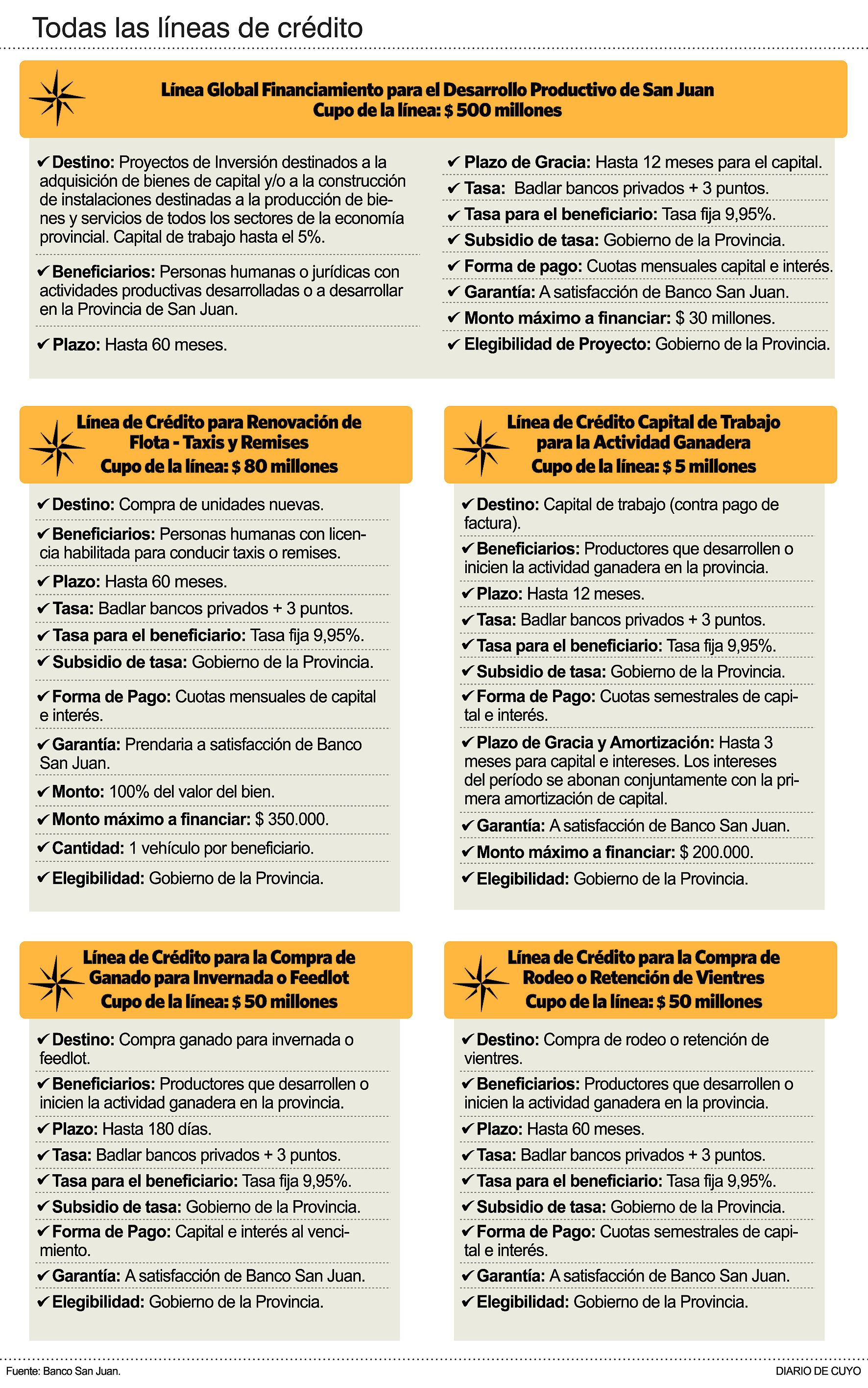 Los nuevos créditos por montos de hasta 3,5 millones de pesos se pueden tomar directamente vía web, desde la comodidad de la empresa, ingresando a la página www.bancosanjuan.com. El banco promete contestar en 48 horas sobre la factibilidad de recibir el crédito. También habrá una oficina específica en el banco.